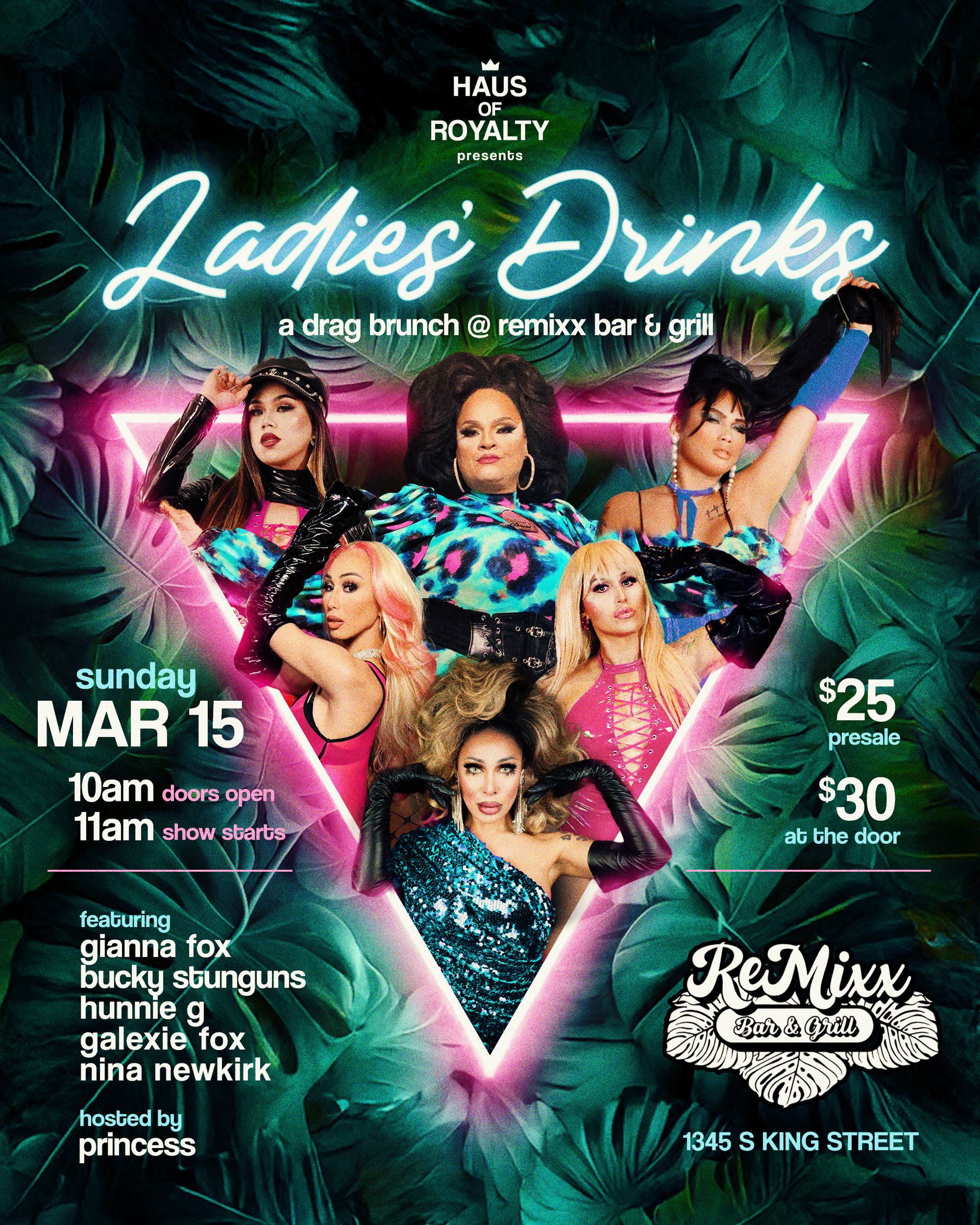 March 15 Sunday view all events Haus of Royalty - Ladies Drinks (a drag brunch) When: Sunday, Mar. 15, 10:00AM Where: @ ReMixx